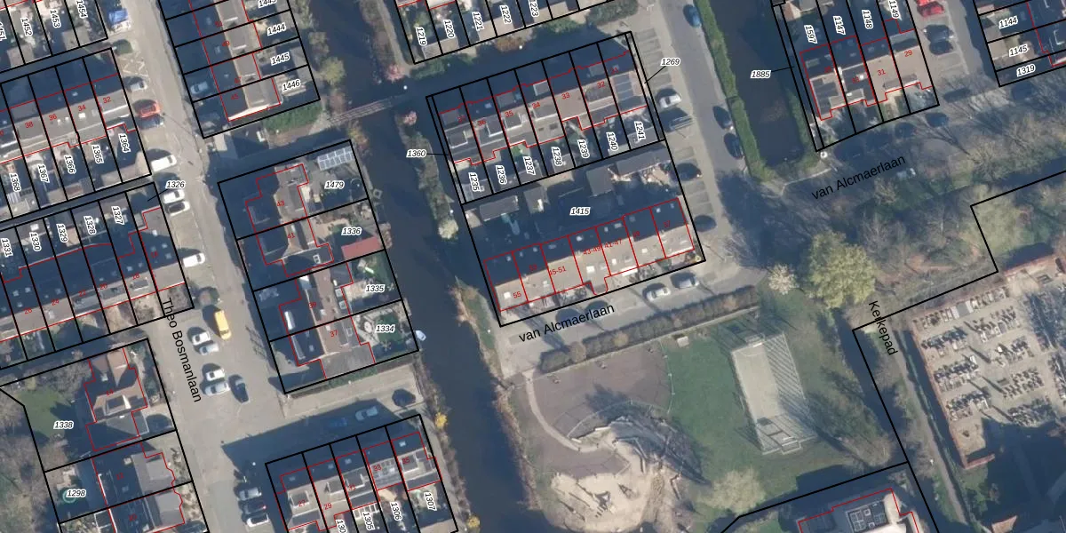 van Alcmaerlaan 53 is gelegen op kadastraal perceel WBG00D1415. Deze kadastrale aanduiding is uniek en wordt gebruikt door het Kadaster om eigendomsrechten en andere zakelijke rechten vast te leggen. Het perceel maakt onderdeel uit van de kadastrale gemeente Woubrugge.