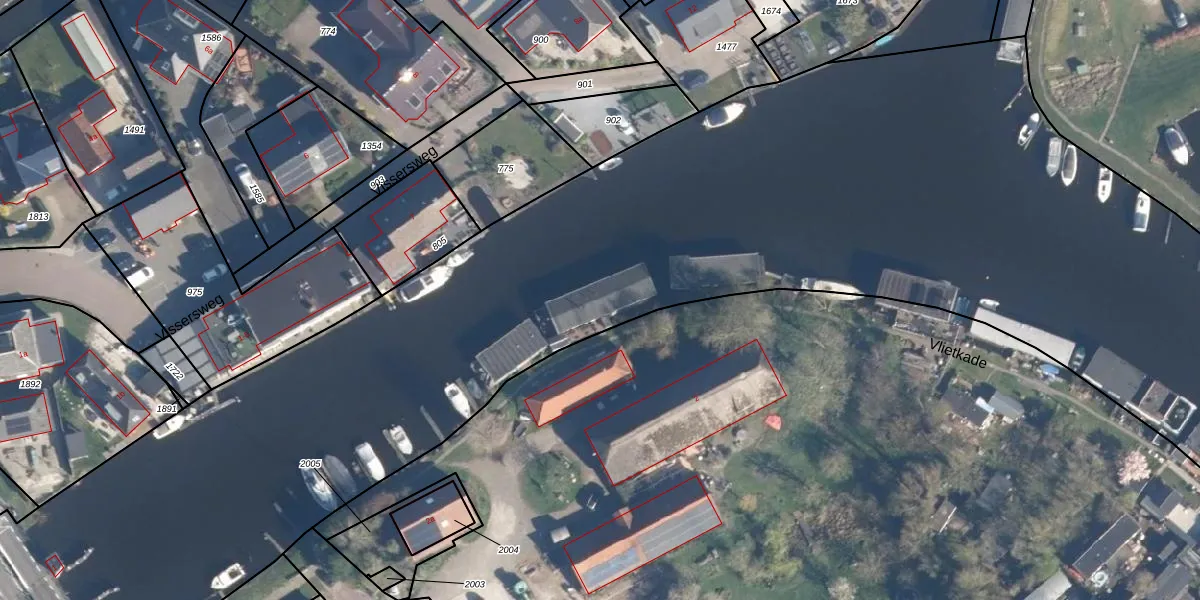 Het perceel waarop Vlietkade 2-w staat heeft een oppervlakte van 4,3 ha. Dit is een zeer groot perceel. De perceeloppervlakte wordt geregistreerd door het Kadaster. Gedetailleerde informatie over de maten van dit perceel kunt u vinden in het rapport Kadastrale kaart met maatvoering van Vlietkade 2-w.