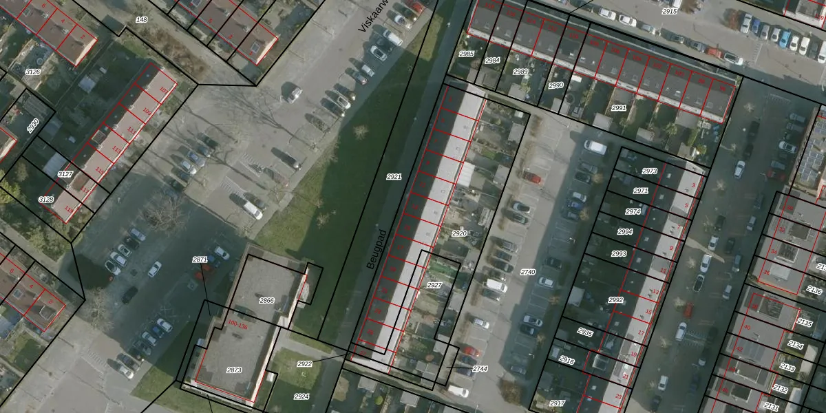 Beugpad 13 is gelegen op kadastraal perceel HVT01D2920. Deze kadastrale aanduiding is uniek en wordt gebruikt door het Kadaster om eigendomsrechten en andere zakelijke rechten vast te leggen. Het perceel maakt onderdeel uit van de kadastrale gemeente Hoogvliet.