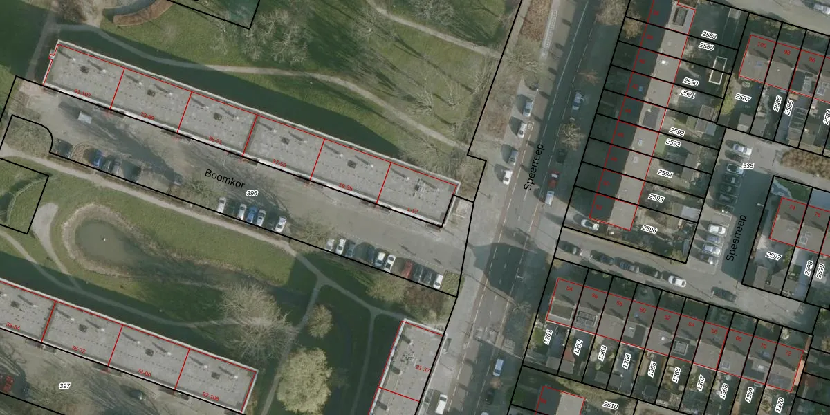 Het perceel waarop Boomkor 13 staat heeft een oppervlakte van 3,1 ha. Dit is een zeer groot perceel. De perceeloppervlakte wordt geregistreerd door het Kadaster. Gedetailleerde informatie over de maten van dit perceel kunt u vinden in het rapport Kadastrale kaart met maatvoering van Boomkor 13.