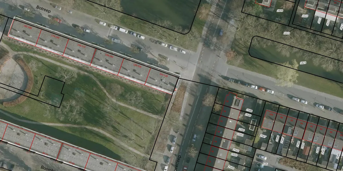Botreep 102 is gelegen op kadastraal perceel HVT01D398. Deze kadastrale aanduiding is uniek en wordt gebruikt door het Kadaster om eigendomsrechten en andere zakelijke rechten vast te leggen. Het perceel maakt onderdeel uit van de kadastrale gemeente Hoogvliet.