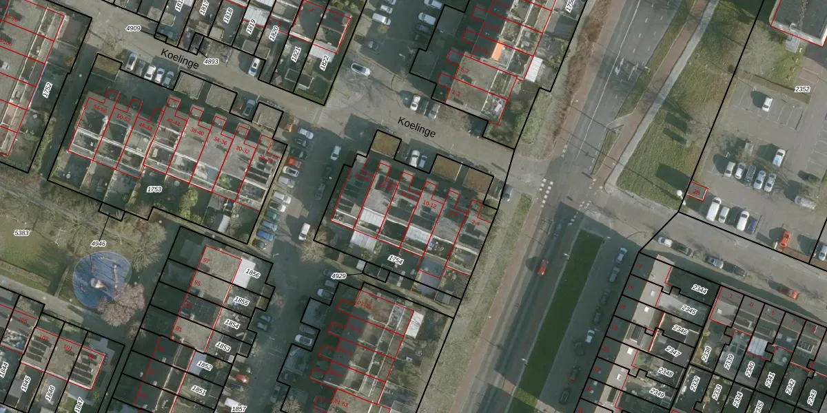 Het perceel waarop Koelinge 14 staat heeft een oppervlakte van 1063 m². Dit is een zeer groot perceel. De perceeloppervlakte wordt geregistreerd door het Kadaster. Gedetailleerde informatie over de maten van dit perceel kunt u vinden in het rapport Kadastrale kaart met maatvoering van Koelinge 14.
