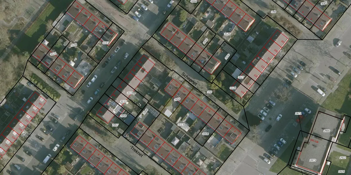 Het perceel waarop Schepnet 16 staat heeft een oppervlakte van 2607 m². Dit is een zeer groot perceel. De perceeloppervlakte wordt geregistreerd door het Kadaster. Gedetailleerde informatie over de maten van dit perceel kunt u vinden in het rapport Kadastrale kaart met maatvoering van Schepnet 16.