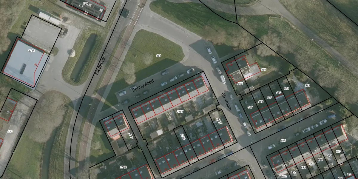 Het perceel waarop Springvloed 6 staat heeft een oppervlakte van 1762 m². Dit is een zeer groot perceel. De perceeloppervlakte wordt geregistreerd door het Kadaster. Gedetailleerde informatie over de maten van dit perceel kunt u vinden in het rapport Kadastrale kaart met maatvoering van Springvloed 6.