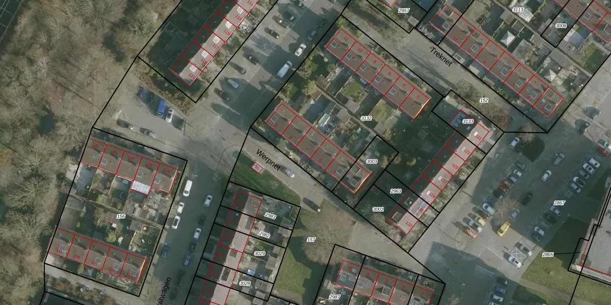 Het perceel waarop Werpnet 7 staat heeft een oppervlakte van 2380 m². Dit is een zeer groot perceel. De perceeloppervlakte wordt geregistreerd door het Kadaster. Gedetailleerde informatie over de maten van dit perceel kunt u vinden in het rapport Kadastrale kaart met maatvoering van Werpnet 7.