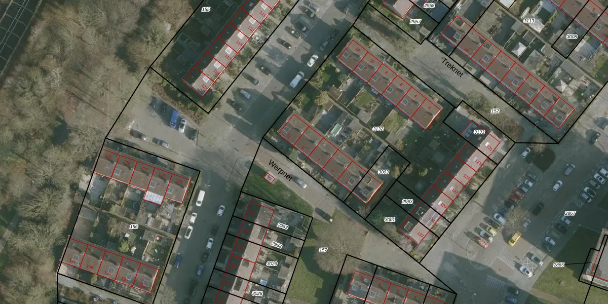Het perceel waarop Werpnet 9 staat heeft een oppervlakte van 2380 m². Dit is een zeer groot perceel. De perceeloppervlakte wordt geregistreerd door het Kadaster. Gedetailleerde informatie over de maten van dit perceel kunt u vinden in het rapport Kadastrale kaart met maatvoering van Werpnet 9.