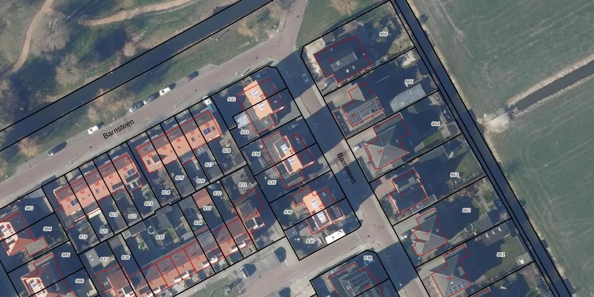Het perceel waarop Barnsteen 29 staat heeft een oppervlakte van 252 m². Dit is een middelgroot perceel. De perceeloppervlakte wordt geregistreerd door het Kadaster. Gedetailleerde informatie over de maten van dit perceel kunt u vinden in het rapport Kadastrale kaart met maatvoering van Barnsteen 29.