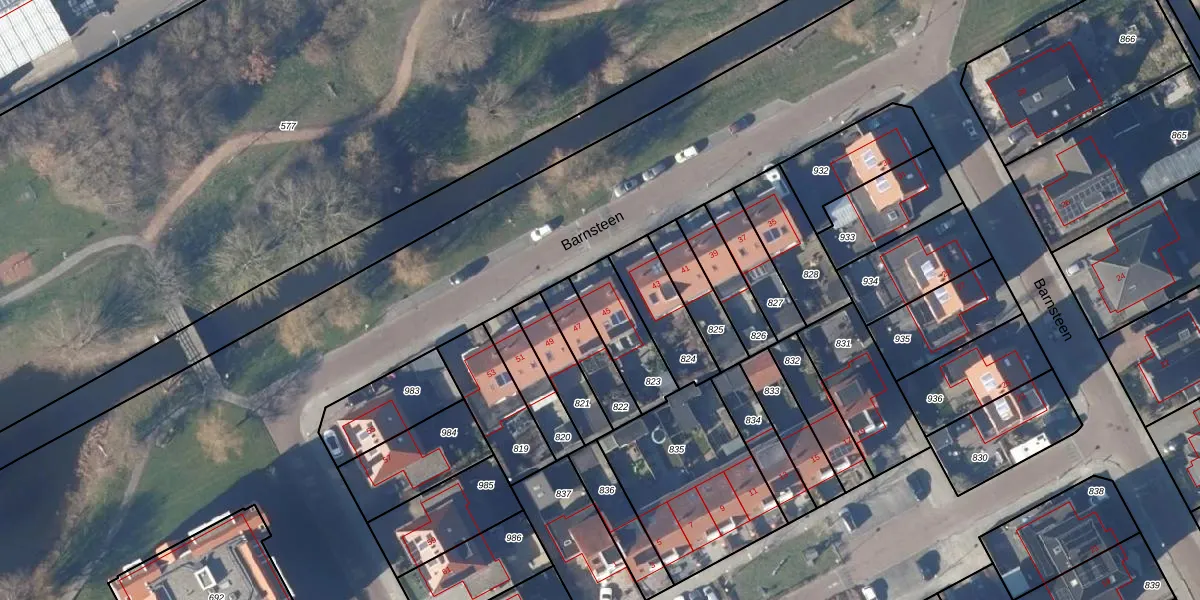 Het perceel waarop Barnsteen 45 staat heeft een oppervlakte van 192 m². Dit is een middelgroot perceel. De perceeloppervlakte wordt geregistreerd door het Kadaster. Gedetailleerde informatie over de maten van dit perceel kunt u vinden in het rapport Kadastrale kaart met maatvoering van Barnsteen 45.
