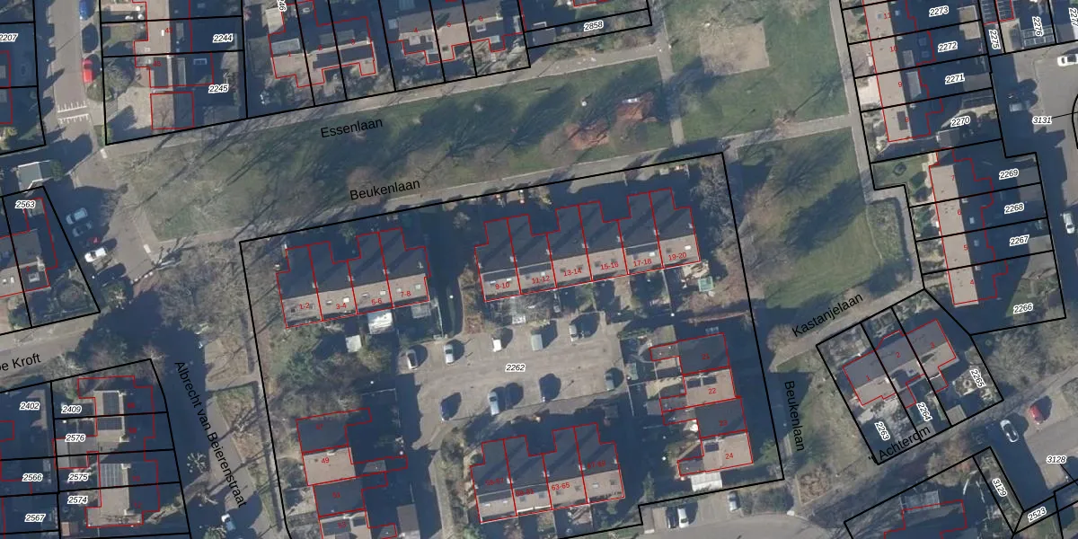 Beukenlaan 11 is gelegen op kadastraal perceel OMR01Q2262. Deze kadastrale aanduiding is uniek en wordt gebruikt door het Kadaster om eigendomsrechten en andere zakelijke rechten vast te leggen. Het perceel maakt onderdeel uit van de kadastrale gemeente Opmeer.