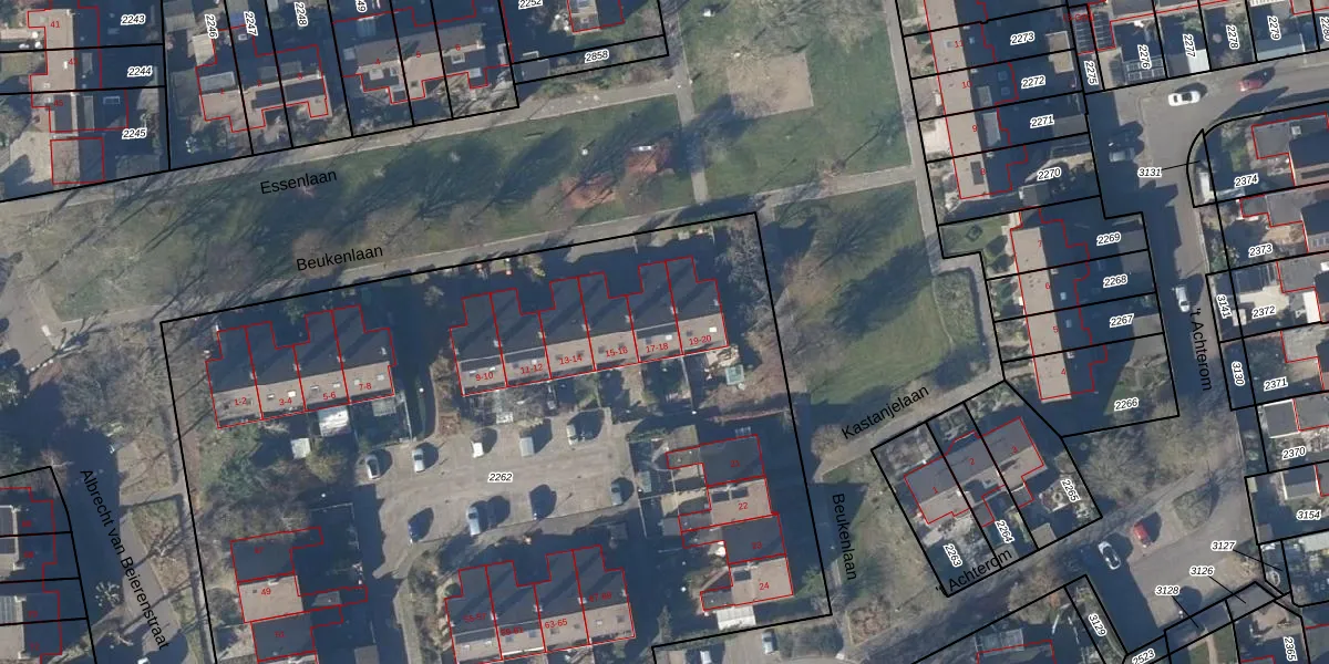 Het perceel waarop Beukenlaan 17 staat heeft een oppervlakte van 5881 m². Dit is een zeer groot perceel. De perceeloppervlakte wordt geregistreerd door het Kadaster. Gedetailleerde informatie over de maten van dit perceel kunt u vinden in het rapport Kadastrale kaart met maatvoering van Beukenlaan 17.