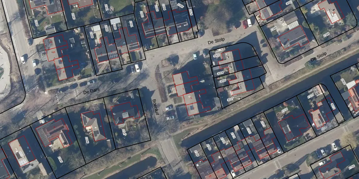 Het perceel waarop Boenluif 3 staat heeft een oppervlakte van 17,0 ha. Dit is een zeer groot perceel. De perceeloppervlakte wordt geregistreerd door het Kadaster. Gedetailleerde informatie over de maten van dit perceel kunt u vinden in het rapport Kadastrale kaart met maatvoering van Boenluif 3.