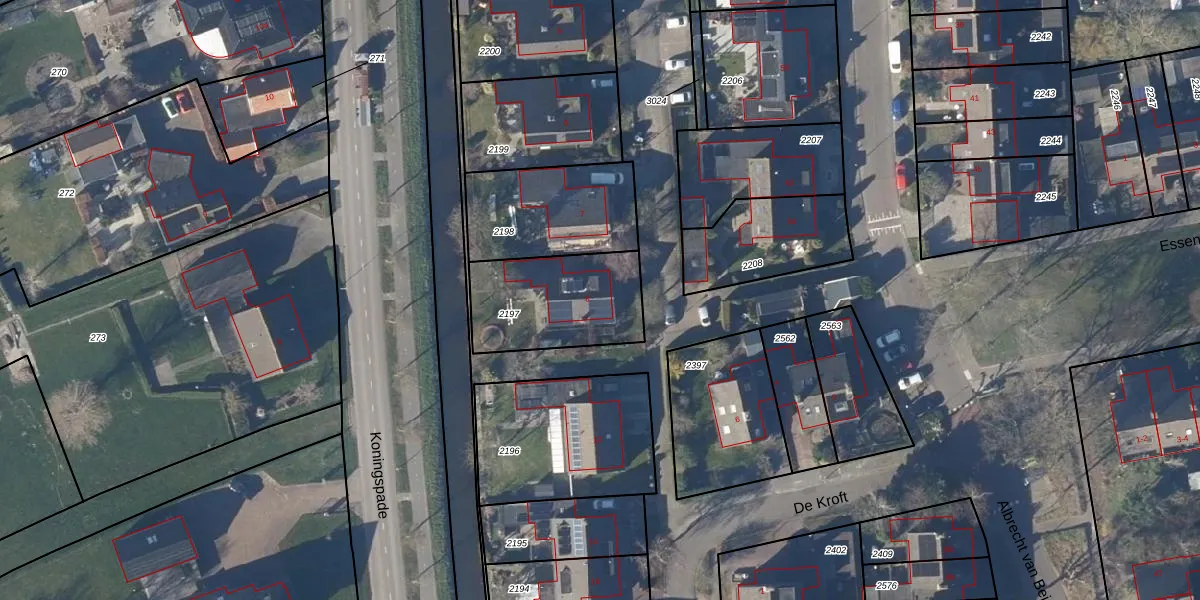 Gebruik de zoekbalk of klik op een perceel voor informatie over de adressen binnen dit perceel.