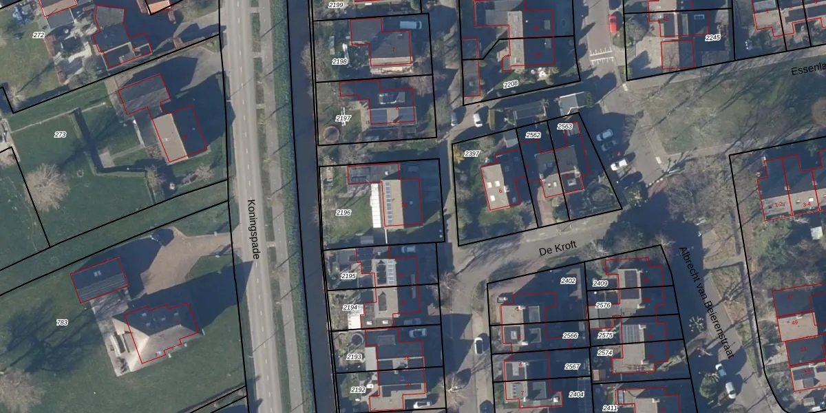 Het perceel waarop De Kroft 12 staat heeft een oppervlakte van 581 m². Dit is een groot perceel. De perceeloppervlakte wordt geregistreerd door het Kadaster. Gedetailleerde informatie over de maten van dit perceel kunt u vinden in het rapport Kadastrale kaart met maatvoering van De Kroft 12.