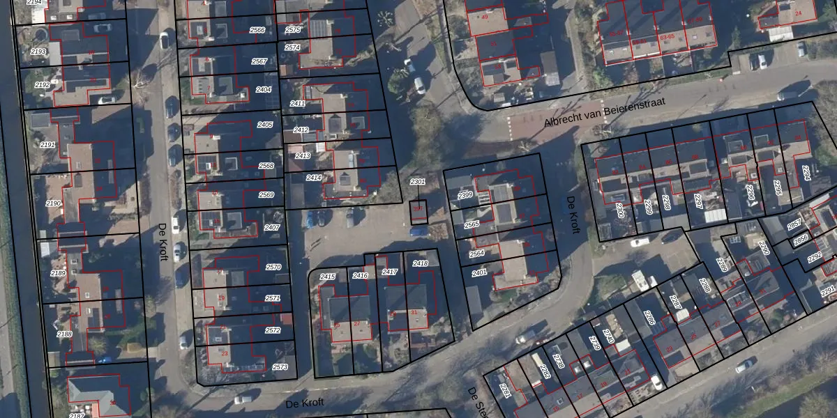 Gebruik de zoekbalk of klik op een perceel voor informatie over de adressen binnen dit perceel.