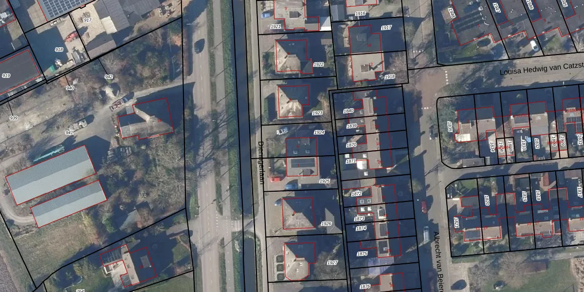 Het perceel waarop Dieringerlaan 6 staat heeft een oppervlakte van 283 m². Dit is een middelgroot perceel. De perceeloppervlakte wordt geregistreerd door het Kadaster. Gedetailleerde informatie over de maten van dit perceel kunt u vinden in het rapport Kadastrale kaart met maatvoering van Dieringerlaan 6.