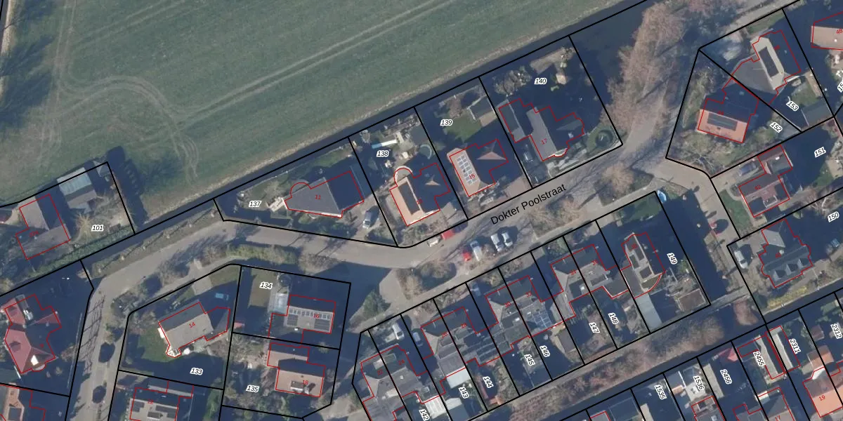 Het perceel waarop Dokter Poolstraat 13 staat heeft een oppervlakte van 525 m². Dit is een groot perceel. De perceeloppervlakte wordt geregistreerd door het Kadaster. Gedetailleerde informatie over de maten van dit perceel kunt u vinden in het rapport Kadastrale kaart met maatvoering van Dokter Poolstraat 13.