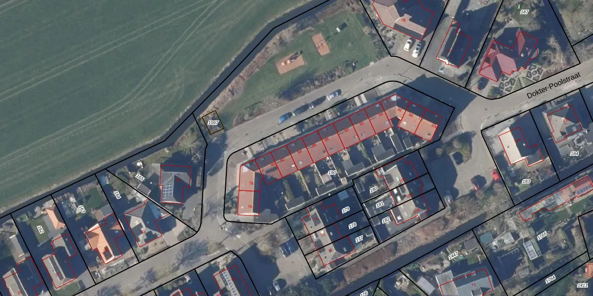 Het perceel waarop Dokter Poolstraat 84 staat heeft een oppervlakte van 1945 m². Dit is een zeer groot perceel. De perceeloppervlakte wordt geregistreerd door het Kadaster. Gedetailleerde informatie over de maten van dit perceel kunt u vinden in het rapport Kadastrale kaart met maatvoering van Dokter Poolstraat 84.