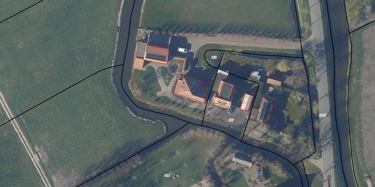 Het perceel waarop Gouwe 23 staat heeft een oppervlakte van 6770 m². Dit is een zeer groot perceel. De perceeloppervlakte wordt geregistreerd door het Kadaster. Gedetailleerde informatie over de maten van dit perceel kunt u vinden in het rapport Kadastrale kaart met maatvoering van Gouwe 23.