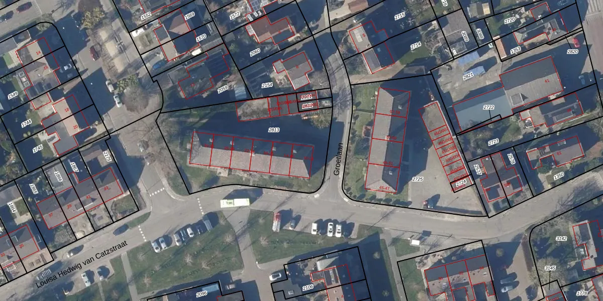 Groetlaan 12 is gelegen op kadastraal perceel OMR01Q2813. Deze kadastrale aanduiding is uniek en wordt gebruikt door het Kadaster om eigendomsrechten en andere zakelijke rechten vast te leggen. Het perceel maakt onderdeel uit van de kadastrale gemeente Opmeer.