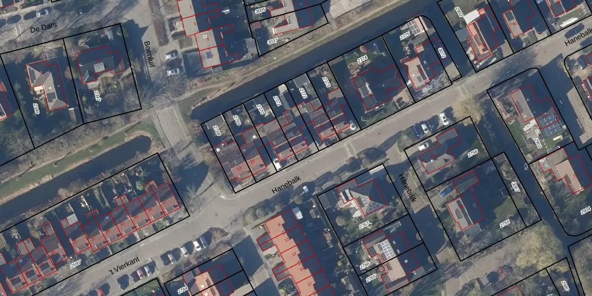 Het perceel waarop Hanebalk 19 staat heeft een oppervlakte van 205 m². Dit is een middelgroot perceel. De perceeloppervlakte wordt geregistreerd door het Kadaster. Gedetailleerde informatie over de maten van dit perceel kunt u vinden in het rapport Kadastrale kaart met maatvoering van Hanebalk 19.