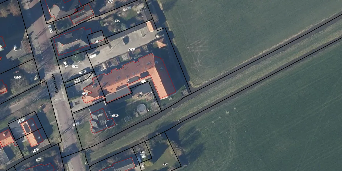 Het perceel waarop Herenweg 6-f staat heeft een oppervlakte van 1912 m². Dit is een zeer groot perceel. De perceeloppervlakte wordt geregistreerd door het Kadaster. Gedetailleerde informatie over de maten van dit perceel kunt u vinden in het rapport Kadastrale kaart met maatvoering van Herenweg 6-f.