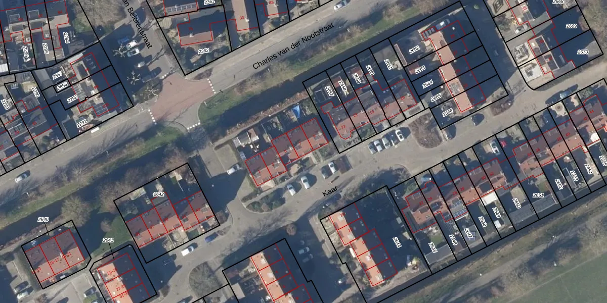Het perceel waarop Kaar 7 staat heeft een oppervlakte van 17,0 ha. Dit is een zeer groot perceel. De perceeloppervlakte wordt geregistreerd door het Kadaster. Gedetailleerde informatie over de maten van dit perceel kunt u vinden in het rapport Kadastrale kaart met maatvoering van Kaar 7.