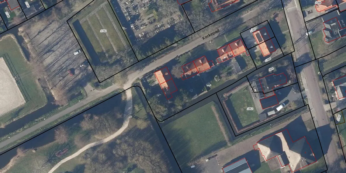 Het perceel waarop Kerkepad 6 staat heeft een oppervlakte van 16,6 ha. Dit is een zeer groot perceel. De perceeloppervlakte wordt geregistreerd door het Kadaster. Gedetailleerde informatie over de maten van dit perceel kunt u vinden in het rapport Kadastrale kaart met maatvoering van Kerkepad 6.