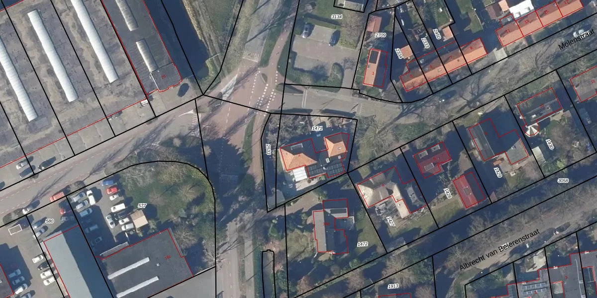 Het perceel waarop Molenstraat 2 staat heeft een oppervlakte van 608 m². Dit is een groot perceel. De perceeloppervlakte wordt geregistreerd door het Kadaster. Gedetailleerde informatie over de maten van dit perceel kunt u vinden in het rapport Kadastrale kaart met maatvoering van Molenstraat 2.