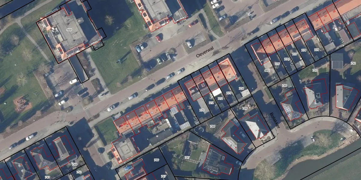 Het perceel waarop Oeverwal 34 staat heeft een oppervlakte van 3,8 ha. Dit is een zeer groot perceel. De perceeloppervlakte wordt geregistreerd door het Kadaster. Gedetailleerde informatie over de maten van dit perceel kunt u vinden in het rapport Kadastrale kaart met maatvoering van Oeverwal 34.