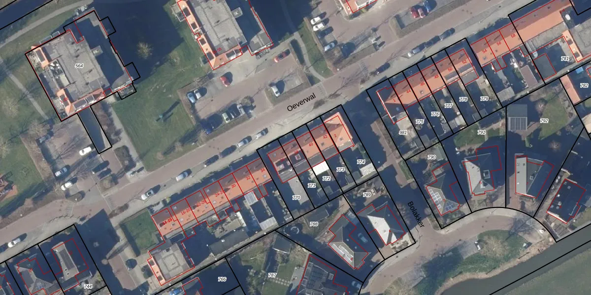 Het perceel waarop Oeverwal 38 staat heeft een oppervlakte van 146 m². Dit is een middelgroot perceel. De perceeloppervlakte wordt geregistreerd door het Kadaster. Gedetailleerde informatie over de maten van dit perceel kunt u vinden in het rapport Kadastrale kaart met maatvoering van Oeverwal 38.