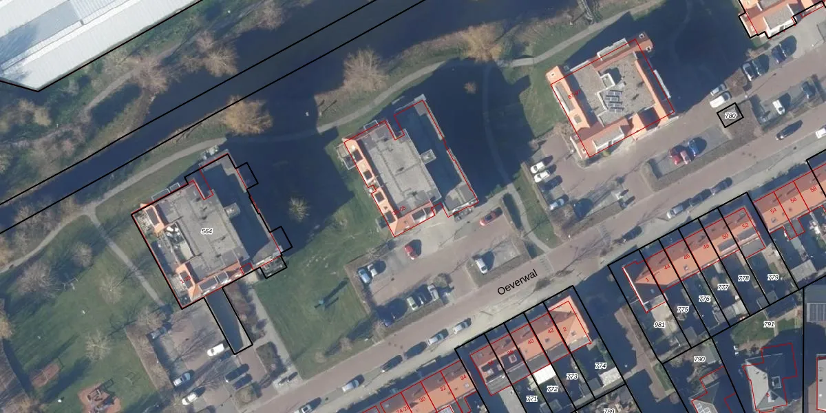 Het perceel waarop Oeverwal 39 staat heeft een oppervlakte van 3,8 ha. Dit is een zeer groot perceel. De perceeloppervlakte wordt geregistreerd door het Kadaster. Gedetailleerde informatie over de maten van dit perceel kunt u vinden in het rapport Kadastrale kaart met maatvoering van Oeverwal 39.