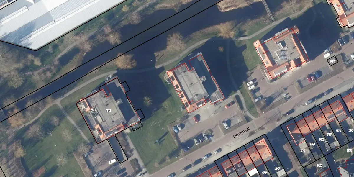 Het perceel waarop Oeverwal 57 staat heeft een oppervlakte van 3,8 ha. Dit is een zeer groot perceel. De perceeloppervlakte wordt geregistreerd door het Kadaster. Gedetailleerde informatie over de maten van dit perceel kunt u vinden in het rapport Kadastrale kaart met maatvoering van Oeverwal 57.