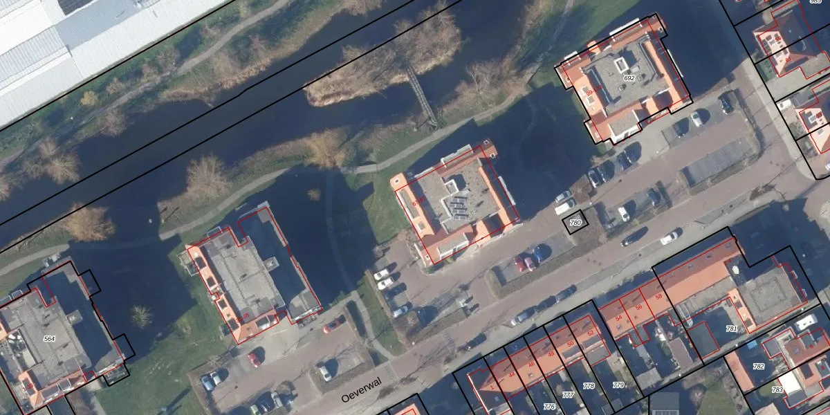 Het perceel waarop Oeverwal 93 staat heeft een oppervlakte van 3,8 ha. Dit is een zeer groot perceel. De perceeloppervlakte wordt geregistreerd door het Kadaster. Gedetailleerde informatie over de maten van dit perceel kunt u vinden in het rapport Kadastrale kaart met maatvoering van Oeverwal 93.