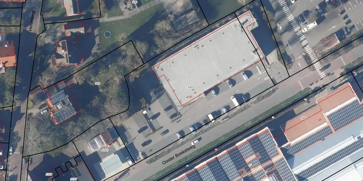 Het perceel waarop Ooster Boekelweg 1-d staat heeft een oppervlakte van 3800 m². Dit is een zeer groot perceel. De perceeloppervlakte wordt geregistreerd door het Kadaster. Gedetailleerde informatie over de maten van dit perceel kunt u vinden in het rapport Kadastrale kaart met maatvoering van Ooster Boekelweg 1-d.
