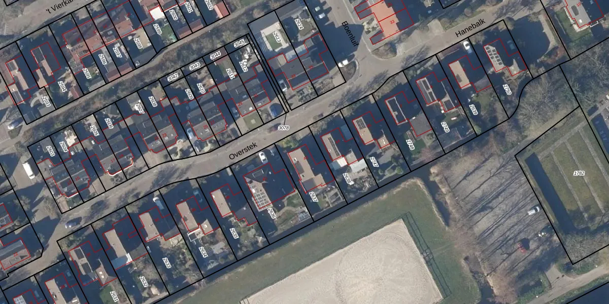 Het perceel waarop Overstek 42 staat heeft een oppervlakte van 365 m². Dit is een groot perceel. De perceeloppervlakte wordt geregistreerd door het Kadaster. Gedetailleerde informatie over de maten van dit perceel kunt u vinden in het rapport Kadastrale kaart met maatvoering van Overstek 42.