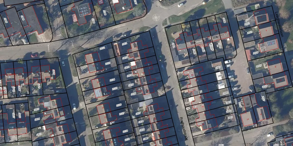 Het perceel waarop Radboudstraat 18 staat heeft een oppervlakte van 165 m². Dit is een middelgroot perceel. De perceeloppervlakte wordt geregistreerd door het Kadaster. Gedetailleerde informatie over de maten van dit perceel kunt u vinden in het rapport Kadastrale kaart met maatvoering van Radboudstraat 18.