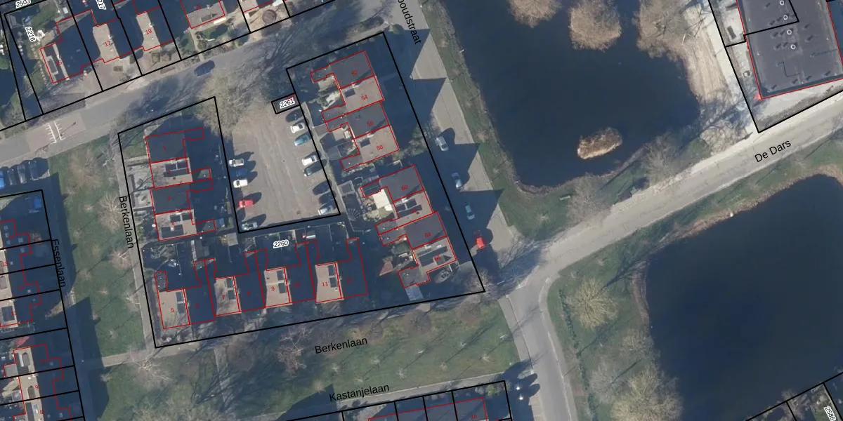 Het perceel waarop Radboudstraat 62 staat heeft een oppervlakte van 3496 m². Dit is een zeer groot perceel. De perceeloppervlakte wordt geregistreerd door het Kadaster. Gedetailleerde informatie over de maten van dit perceel kunt u vinden in het rapport Kadastrale kaart met maatvoering van Radboudstraat 62.