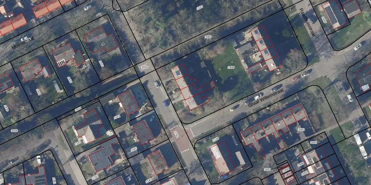 Het perceel waarop Radboudstraat 7 staat heeft een oppervlakte van 2585 m². Dit is een zeer groot perceel. De perceeloppervlakte wordt geregistreerd door het Kadaster. Gedetailleerde informatie over de maten van dit perceel kunt u vinden in het rapport Kadastrale kaart met maatvoering van Radboudstraat 7.