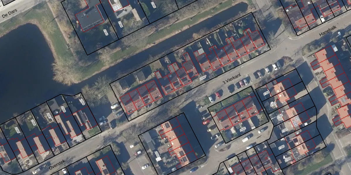 Het perceel waarop 't Vierkant 29 staat heeft een oppervlakte van 2179 m². Dit is een zeer groot perceel. De perceeloppervlakte wordt geregistreerd door het Kadaster. Gedetailleerde informatie over de maten van dit perceel kunt u vinden in het rapport Kadastrale kaart met maatvoering van 't Vierkant 29.