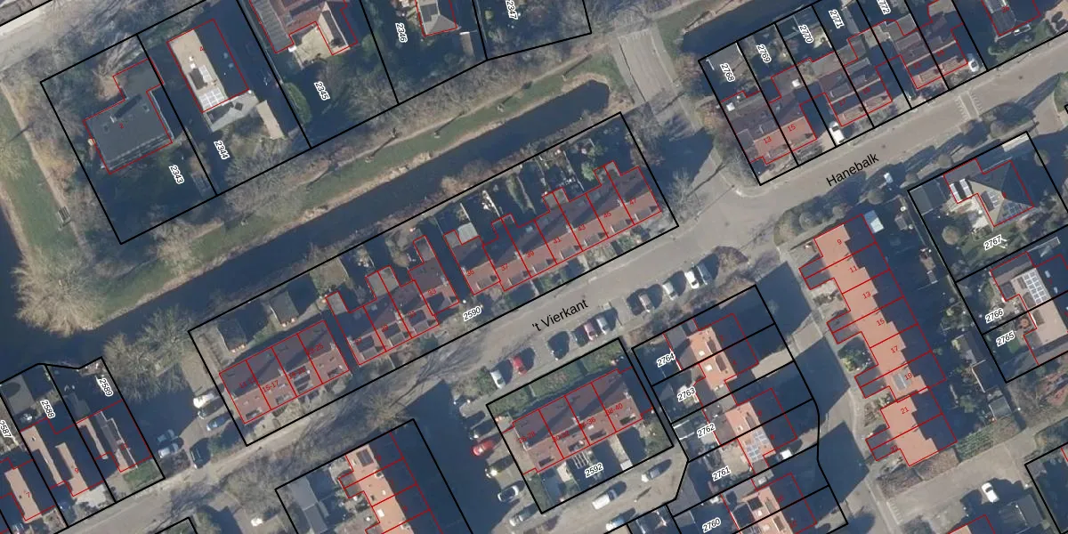 Het perceel waarop 't Vierkant 39 staat heeft een oppervlakte van 2179 m². Dit is een zeer groot perceel. De perceeloppervlakte wordt geregistreerd door het Kadaster. Gedetailleerde informatie over de maten van dit perceel kunt u vinden in het rapport Kadastrale kaart met maatvoering van 't Vierkant 39.