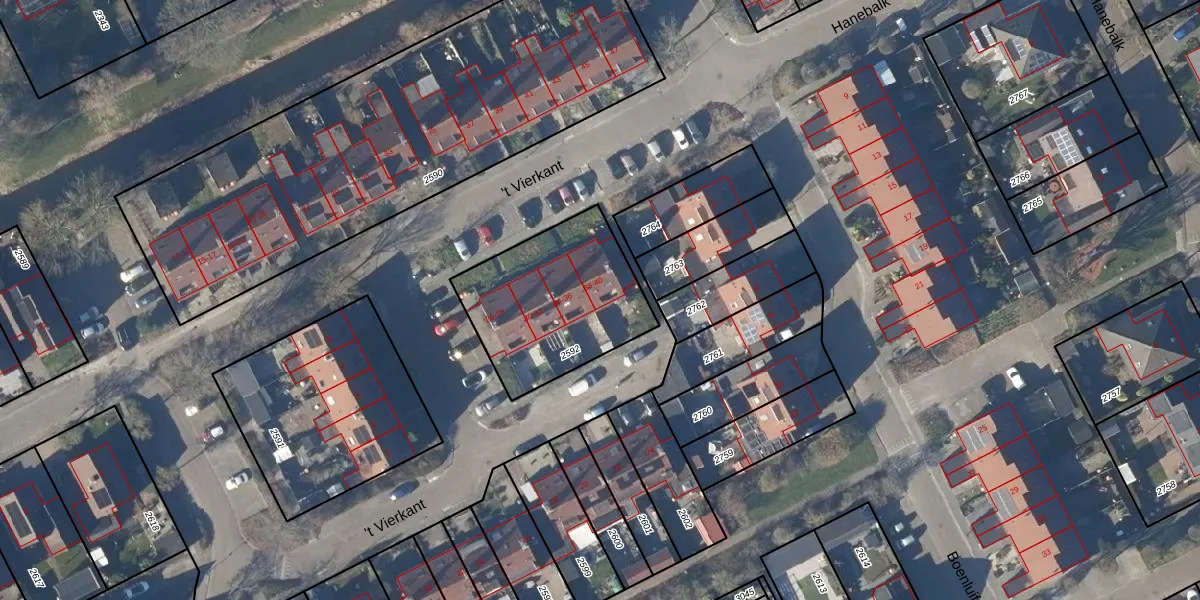 Het perceel waarop 't Vierkant 40 staat heeft een oppervlakte van 635 m². Dit is een groot perceel. De perceeloppervlakte wordt geregistreerd door het Kadaster. Gedetailleerde informatie over de maten van dit perceel kunt u vinden in het rapport Kadastrale kaart met maatvoering van 't Vierkant 40.