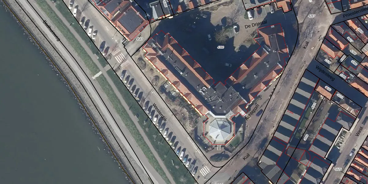 Het perceel waarop Achterom 1-132 staat heeft een oppervlakte van 5249 m². Dit is een zeer groot perceel. De perceeloppervlakte wordt geregistreerd door het Kadaster. Gedetailleerde informatie over de maten van dit perceel kunt u vinden in het rapport Kadastrale kaart met maatvoering van Achterom 1-132.