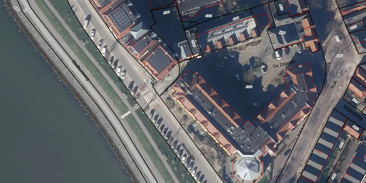 Het perceel waarop Achterom 1-319 staat heeft een oppervlakte van 5249 m². Dit is een zeer groot perceel. De perceeloppervlakte wordt geregistreerd door het Kadaster. Gedetailleerde informatie over de maten van dit perceel kunt u vinden in het rapport Kadastrale kaart met maatvoering van Achterom 1-319.