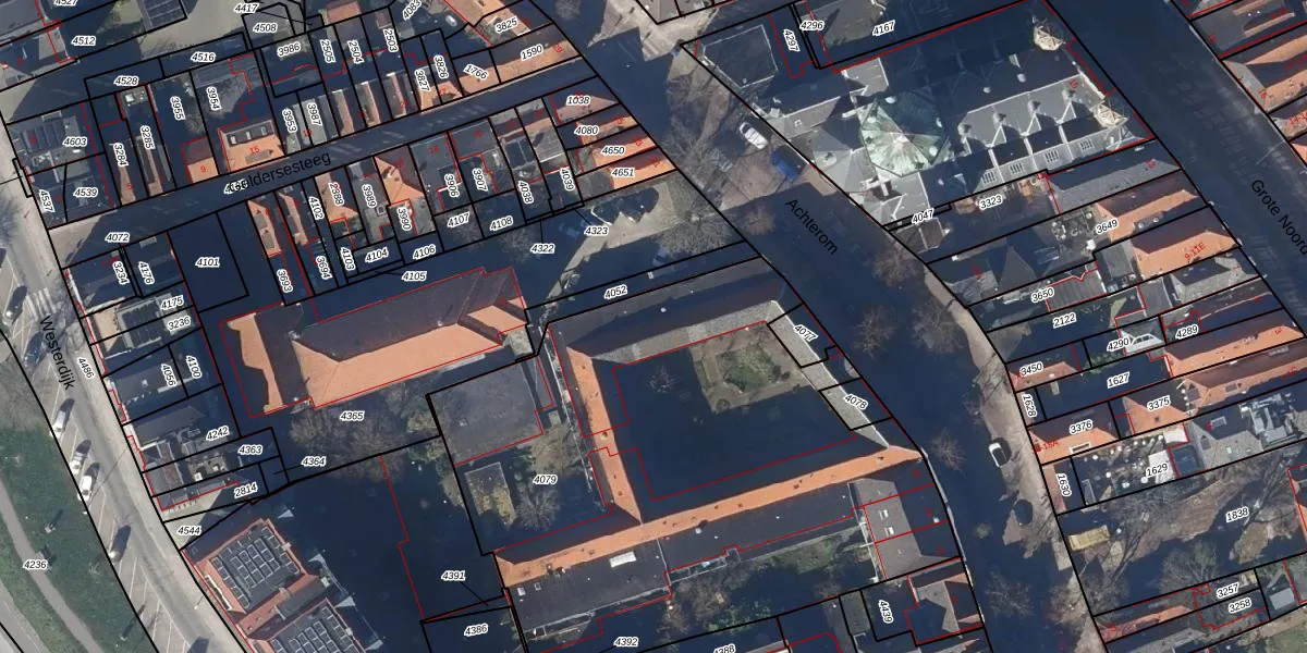 Het perceel waarop Achterom 17-29 staat heeft een oppervlakte van 3158 m². Dit is een zeer groot perceel. De perceeloppervlakte wordt geregistreerd door het Kadaster. Gedetailleerde informatie over de maten van dit perceel kunt u vinden in het rapport Kadastrale kaart met maatvoering van Achterom 17-29.