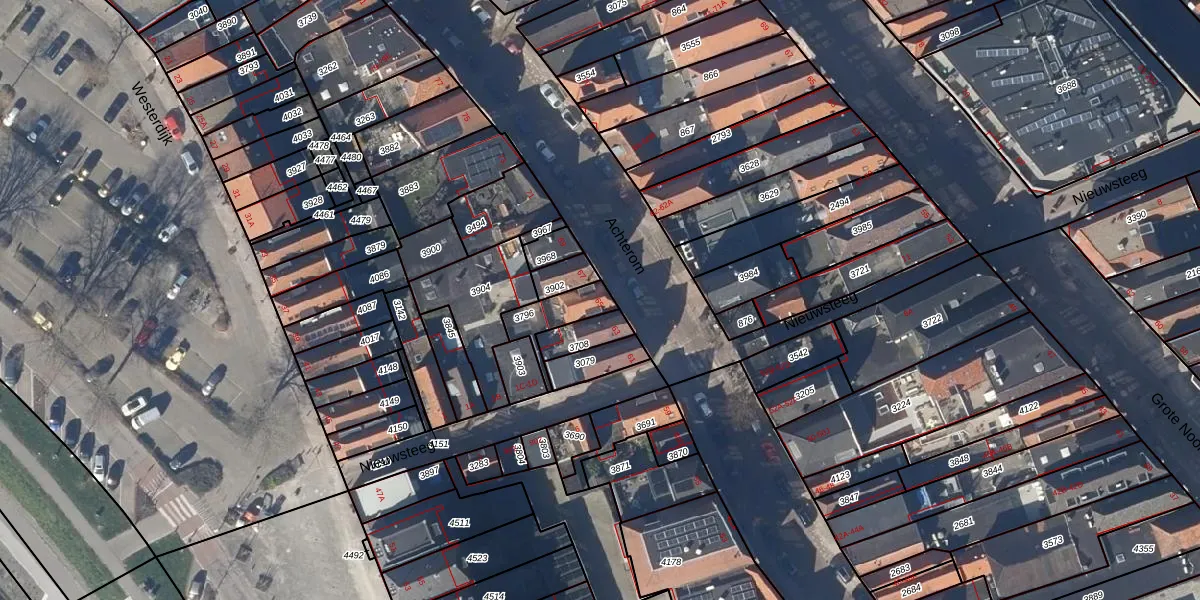 Het perceel waarop Achterom 65 staat heeft een oppervlakte van 104 m². Dit is een middelgroot perceel. De perceeloppervlakte wordt geregistreerd door het Kadaster. Gedetailleerde informatie over de maten van dit perceel kunt u vinden in het rapport Kadastrale kaart met maatvoering van Achterom 65.