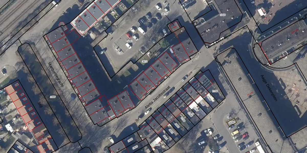 Het perceel waarop Aletta Jacobsstraat 34 staat heeft een oppervlakte van 4150 m². Dit is een zeer groot perceel. De perceeloppervlakte wordt geregistreerd door het Kadaster. Gedetailleerde informatie over de maten van dit perceel kunt u vinden in het rapport Kadastrale kaart met maatvoering van Aletta Jacobsstraat 34.