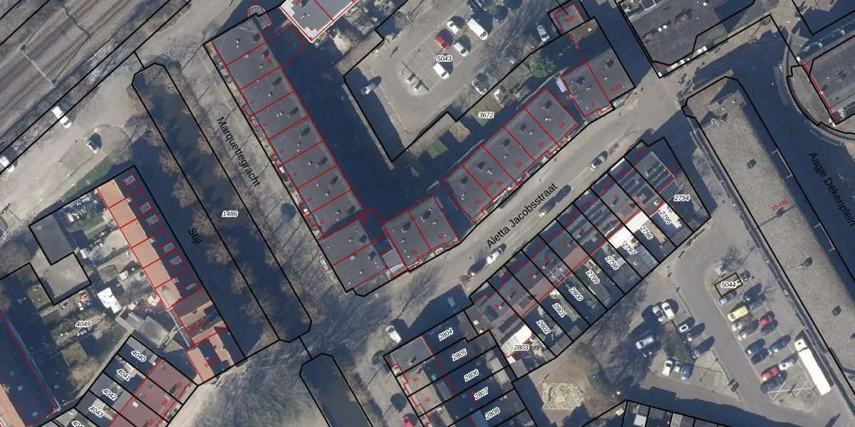 Het perceel waarop Aletta Jacobsstraat 50 staat heeft een oppervlakte van 4150 m². Dit is een zeer groot perceel. De perceeloppervlakte wordt geregistreerd door het Kadaster. Gedetailleerde informatie over de maten van dit perceel kunt u vinden in het rapport Kadastrale kaart met maatvoering van Aletta Jacobsstraat 50.