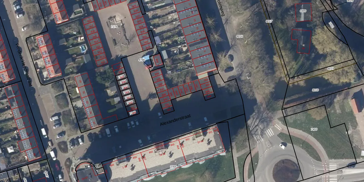 Het perceel waarop Alexanderstraat 944 staat heeft een oppervlakte van 9437 m². Dit is een zeer groot perceel. De perceeloppervlakte wordt geregistreerd door het Kadaster. Gedetailleerde informatie over de maten van dit perceel kunt u vinden in het rapport Kadastrale kaart met maatvoering van Alexanderstraat 944.