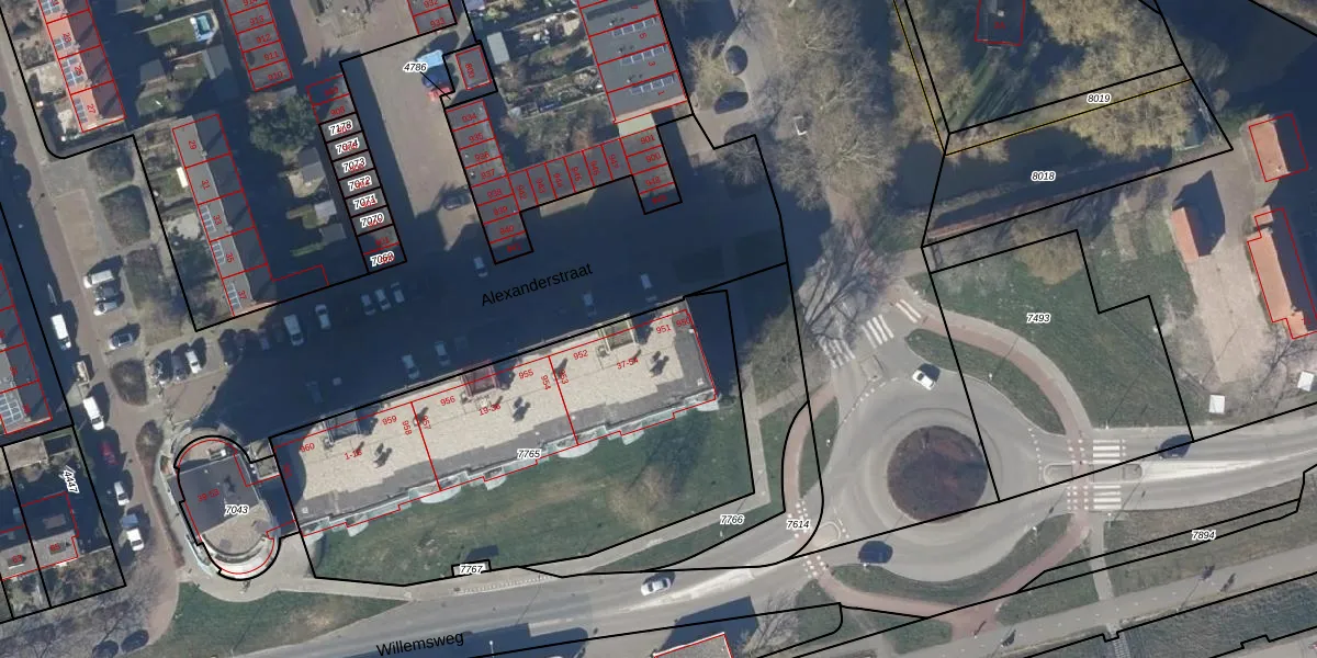 Het perceel waarop Alexanderstraat 951 staat heeft een oppervlakte van 2088 m². Dit is een zeer groot perceel. De perceeloppervlakte wordt geregistreerd door het Kadaster. Gedetailleerde informatie over de maten van dit perceel kunt u vinden in het rapport Kadastrale kaart met maatvoering van Alexanderstraat 951.