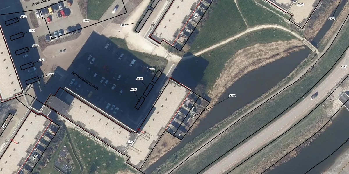 Het perceel waarop Astronautenweg 182 staat heeft een oppervlakte van 1547 m². Dit is een zeer groot perceel. De perceeloppervlakte wordt geregistreerd door het Kadaster. Gedetailleerde informatie over de maten van dit perceel kunt u vinden in het rapport Kadastrale kaart met maatvoering van Astronautenweg 182.